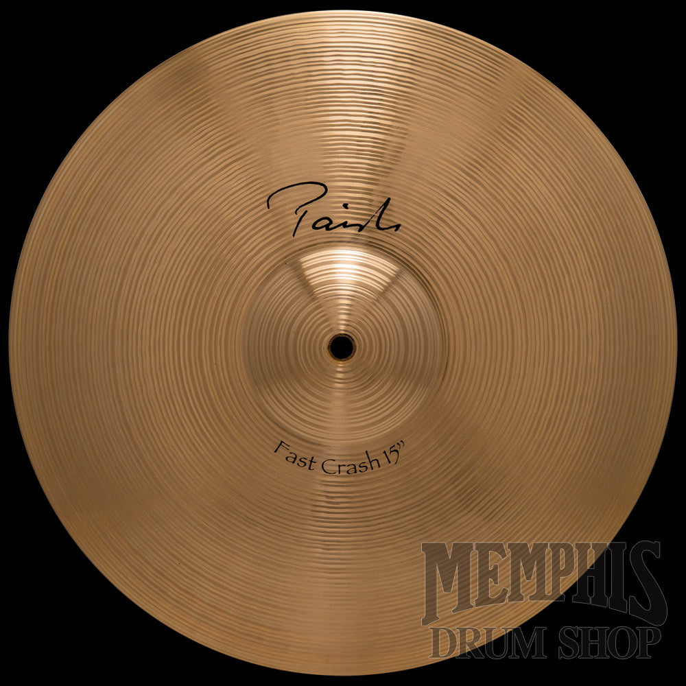 The 15" Paiste Signature Fast Crash Cymbal (4001315) is medium bright, silvery, warm, full, and transparent. Fairly narrow range, clean mix. Extremely responsive, fades fast with beautiful, dark shimmer. Suited for fast playing.