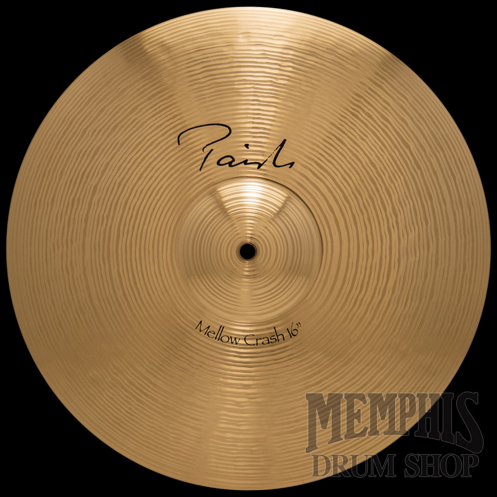 The 16" Paiste Signature Mellow Crash Cymbal is warm, mellow, low, full. Narrow range, and a medium clean mix. Very responsive with crisp attack and fast fade. Well suited for lower volume playing.