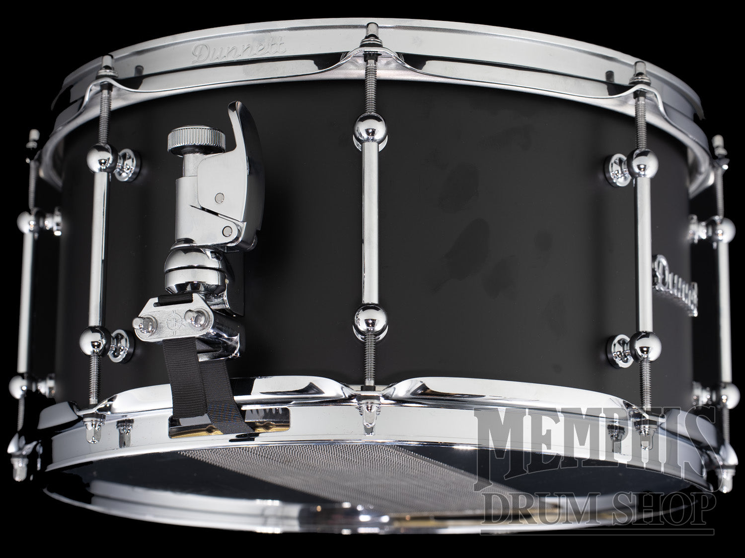 The Dunnett Classic 13x7 Titanium Snare Drum - Matte Black (713TI-MB) features a Proprietery Year 20 Titanium Shell with Straight Bearing Edges, 8 R7 Tube Lugs, 2.3mm Double-Edge/Double-Flange Hoops, R5 Quick Release Swivel Lever Throw-Off and Butt Plate, Dunnett Hypervent, 42-Strand Presence Snare Wires, Dunnett Res-O-Coat Batter Drumhead, Cristal Res-O-Clear Snare Side Drumhead, Matte Black Finish, Chrome Hardware, and Dunnett Classic Logo and Script Badges. Dunnett Soft Snare Drum Bag included with purchase.