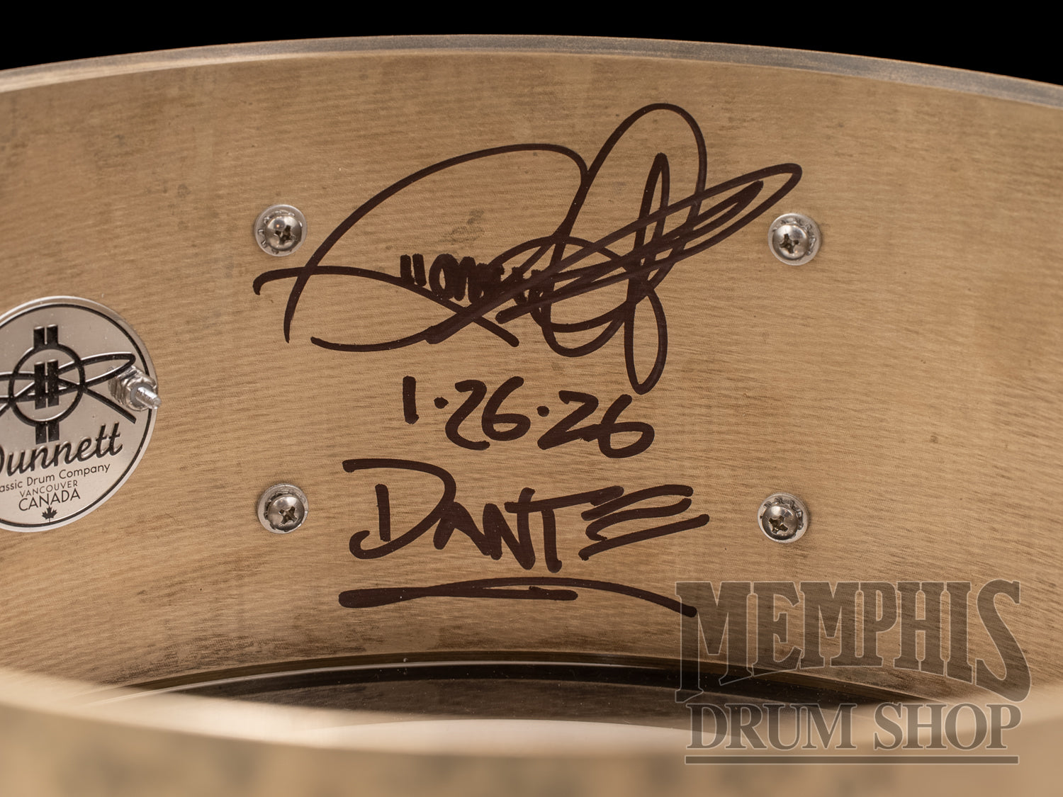 The Dunnett Classic 14x5.5 Model K Cast Bronze Snare Drum with Die-Cast Hoops - Lucky Penny Patina (5514K-DC-LP) features a Model K Cast Bronze Shell with 45-Degree Bearing Edges, 10 R9 Tube Lugs, Die-Cast Hoops, R5 Quick Release Swivel Lever Throw-Off and Butt Plate, Dunnett Hypervent, 42-Strand Presence Snare Wires, Dunnett Classic Logo & Script Badges, Lucky Penny Antique Patina Finish, Chrome Hardware, and Dunnett Classic Logo & Script Badges. Dunnett Soft Snare Drum Bag included with purchase.