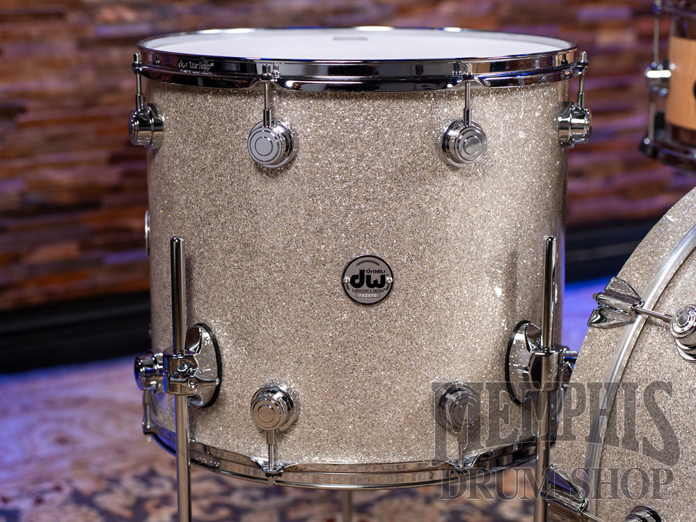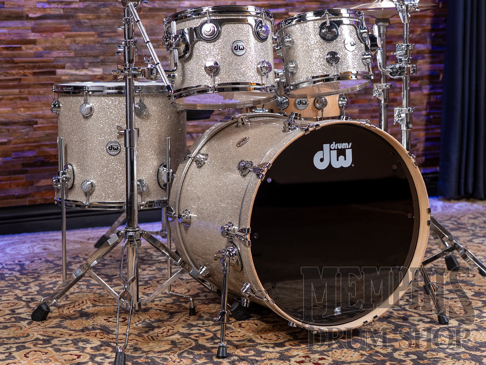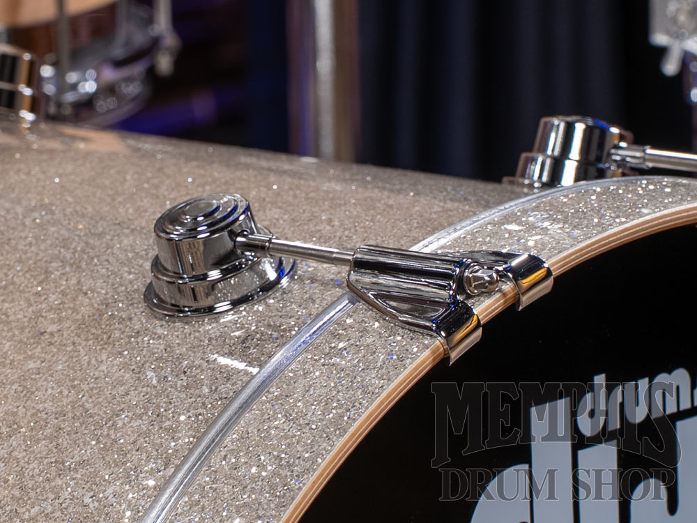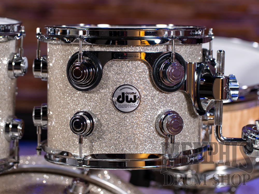 The DW Collector's Series Maple Drum Set 22/10/12/16 - Broken Glass (DW4PCCOLLFPBG) features 8-ply North American Pure Maple shells with 3-ply North American Pure Maple reinforcement hoops made to John Good's recommended Specialized Shell Construction specifications, 60-degree bearing edges, and FinishPly Broken Glass finish. This drum sets Pure Maple shells produce maximum resonance, projection, and attack. Combined with reinforcement hoops, the balanced maple tone of this drum set is more focused. Perfect for studio and live applications. Additional features for this drum set include: matching wood bass drum hoops, claw hooks, key rods, modern telescopic spurs, True-Hoops on the toms, Turret Lugs, DW Coated Clear batter drumhead on the bass drum, DW Ebony Black Vented resonant drumhead on the bass drum, DW Coated Clear batter drumheads on the toms, DW Clear resonant drumheads on the toms, and DW Collector's Series badges. DW S.T.M. Suspension Tom Mount System for the 10" and 12" toms are included with this drum set. The Cymbal Stand Mounted Tom Clamps (DWSM991) are not included with this drum set.