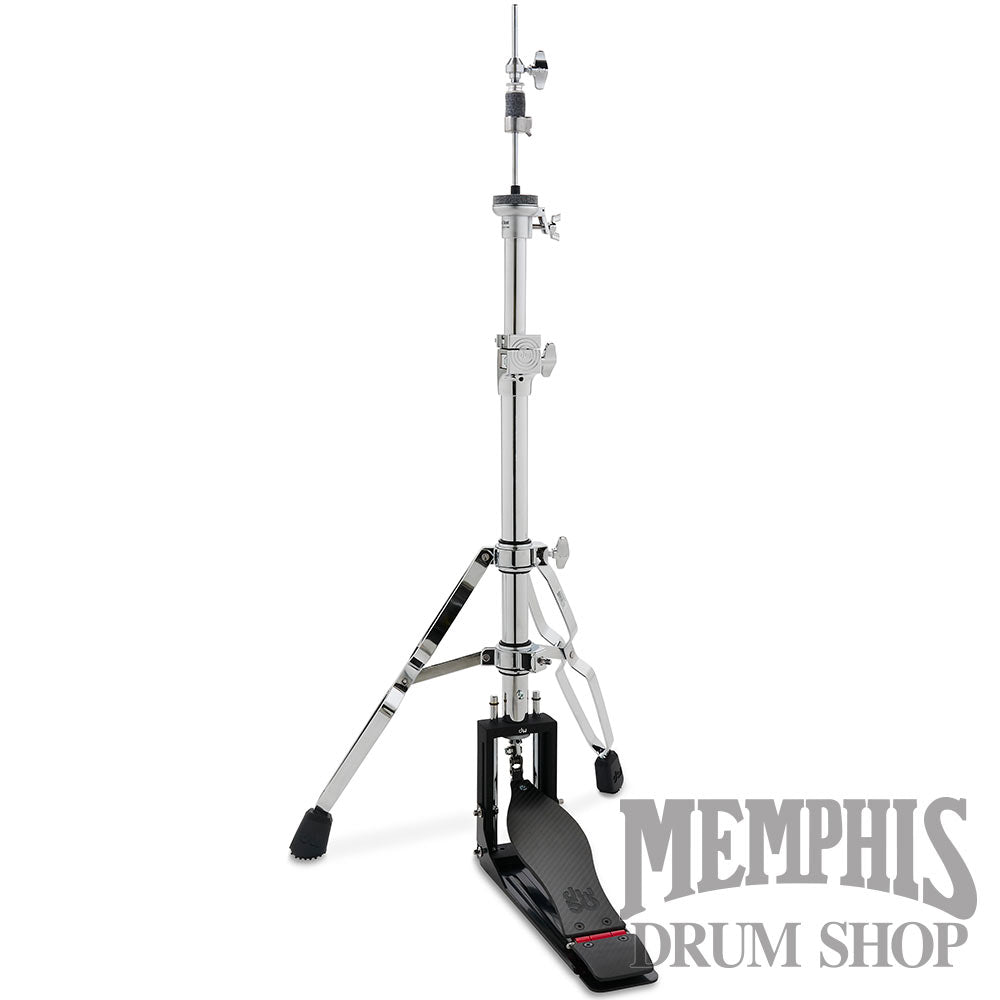 The DW DW50 Carbon Fiber 2-Leg Hi-Hat Stand (DWCP5550TDC). This limited-edition DW 50th Anniversary Carbon Fiber 2-Leg Hi-Hat Stand incorporates a DW50 signature logo on a carbon fiber footboard and heel plate. Designed to match the DW50 carbon fiber single and double pedals, this chain-driven stand is also equipped with a Delta Ball Bearing and a lateral cymbal seat adjustment to adjust the angle of the bottom cymbal. This hi-hat stands delivers all the speed, precision, and durability you expect from 5000 Series hardware at a reduced weight.
