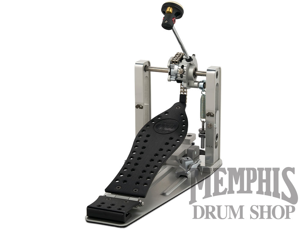 The DW MFG Series Machined Chain Drive Single Bass Drum Pedal - Black Edition (DWCPMCDBK). Building on the success of the MDD Machine Direct Drive Pedal, the MCD Machined Chain Drive Pedal is a boutique pedal that shares many of the patented features, industrial design and build-quality of its Direct Drive cousin. The most striking difference is an Adjustable, Sprocket-Less Cam that incorporates a gear shift-style lever. The lever allows players to quickly shift between the most popular chain-drive cam settings, and is easily accessible when mounted to a bass drum. DW Director of R&D, Rich Sikra, explains, "We knew this would be the next logical step when we were introducing the MDD pedals. So many of our artists absolutely love their 9000 pedals, but they're also enamored with the form and function of DW MFG. Plus, we knew that the direct drive feel wasn't for everyone. It's been a really fun and challenging project for the R&D team.' Other notable features include a racing-style, all-aluminum, perforated footboard with matching, contoured heel plate, Tri-Pivot Swivel Toe-Clamp, V.E.R.T. Vertical Spring Adjustment, Control Weight/Impact Beater and more. A DW MFG carrying case is also included. DW: The Drummer's Choice. Pedal Finish: Graphite Anodized Aluminum.