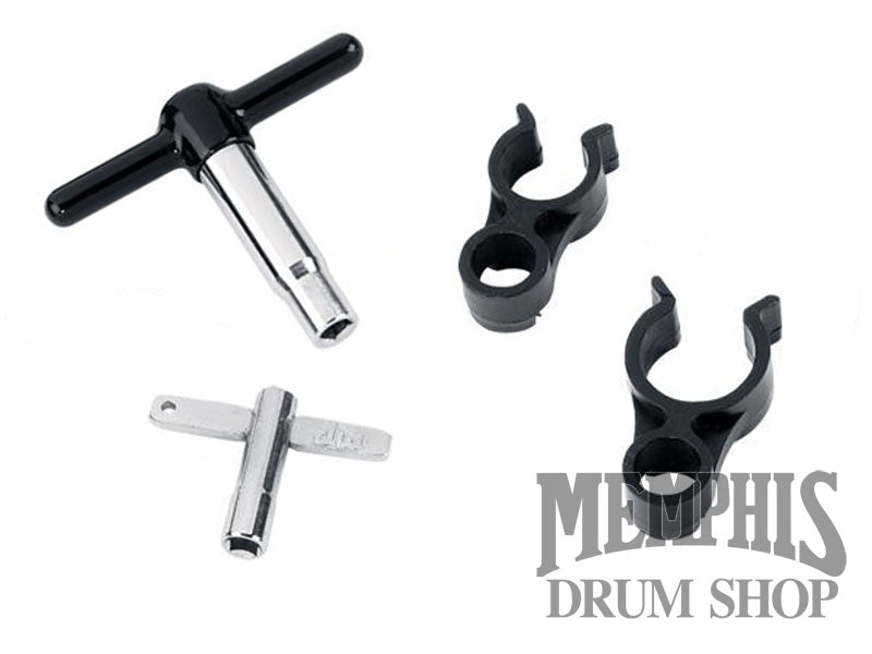 Hi-torque steel drum key and standard key with 2 clips for 3/4-inch and 1-inch tubes.