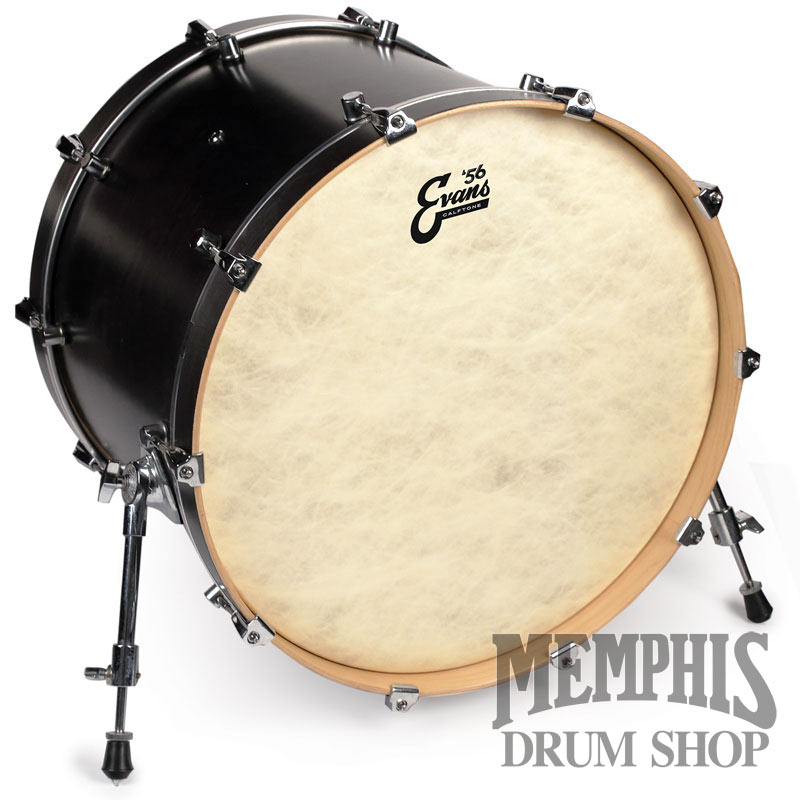 Evans '56 Calftone Bass Drumheads are made with a 12mil film base and blended with unique materials these heads are thicker than our tom/snare 56' Calftone heads to help optimize the sound for larger drums, lower tunings, and greater tonal response. The approach is identical to how natural skins are used across a drum set in which thinner skins are used up top and thicker skins are used down low for increased bass response. As a throwback to the year Evans was founded, Evans '56 calftone drumheads are for drummers looking for a vintage look and sound. These drumheads are a synthetic alternative to traditional calfskin and embody the calfskin look and sound but with the consistency, fit, and tuning range made standard with Level 360 Technology.