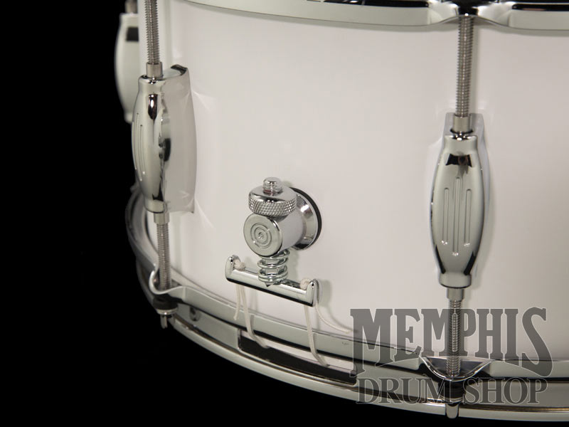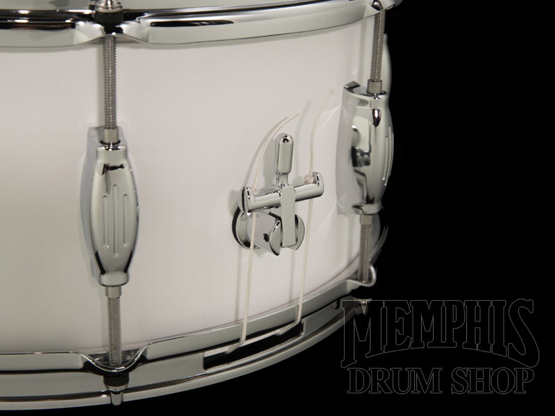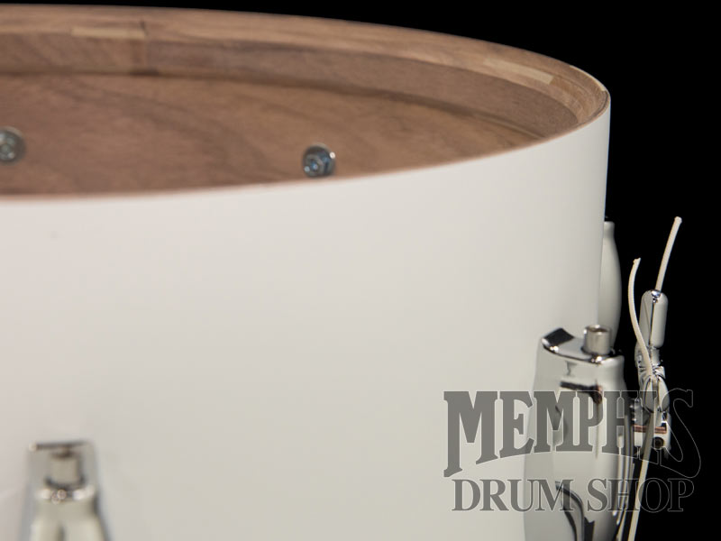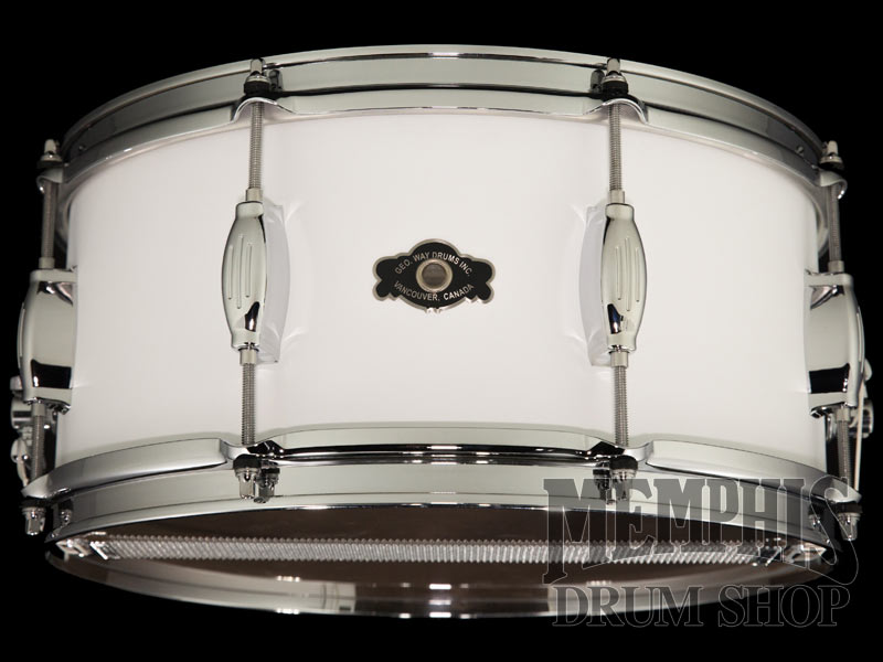 The 14x6.5 George H. Way Tradition Walnut Snare Drum (GW654T-MWW) has a 4-ply Walnut Shell, 8 Streamline Lug Casings, Triple Flange Hoops, 845 Throw-Off, and Butt-End Adjuster. The George Way Walnut shells are warm, dry, full, and have a lower fundamental note. This snare drum has a White Matte Lacquer finish.