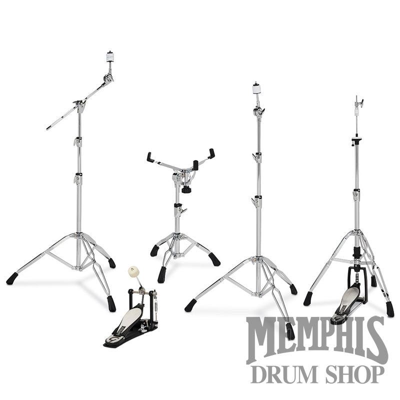 The Gretsch G3 Hardware Pack offers an assortment of newly designed stands for drummers and percussionists to comfortably use throughout their kit or percussion rig. this Gretsch hardware pack includes a straight cymbal stand, a boom cymbal stand, a Hi-Hat stand, a snare stand, and a single chain bass drum pedal.