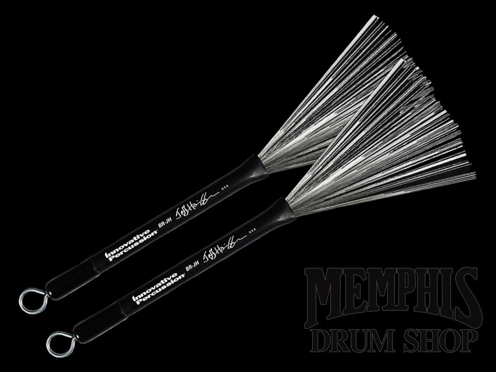 The Innovative Percussion BR-JH Signature Jeff Hamilton Model is a retractable brush made of stiff heavy guage wire with a rubber grip. The thicker wire holds a high amount of tensile strength, which provides more 'bounce' around the kit. The BR-JH has a length of 13 3/8", with a diameter of .565". Sold as a pair.