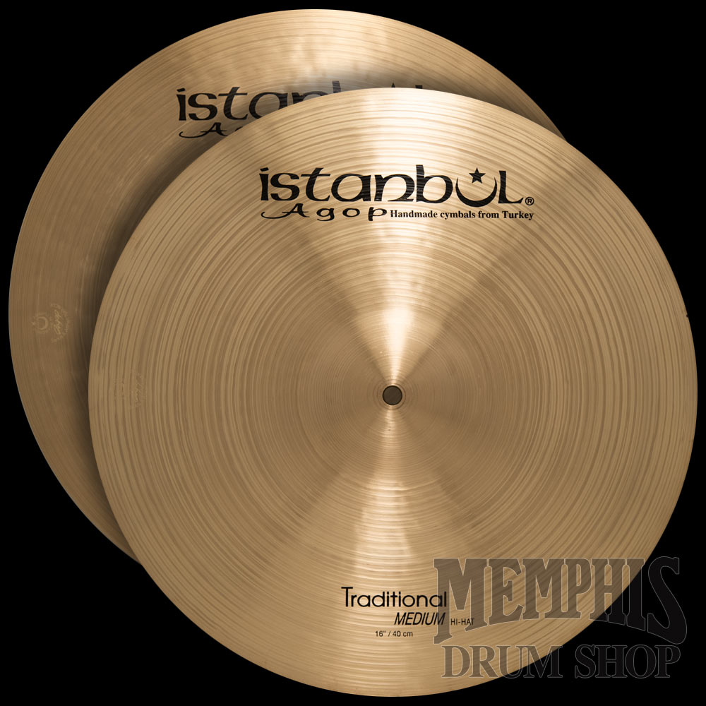 The 16" Istanbul Agop Traditional Medium Hi Hat Cymbals have a full bodied sticking soft and warm quality for all around use. Each Turkish cymbal is a work of art hand-crafted individually by the cymbalsmith. Variations in color, hammer marks, lathing, labels, etc., are all enhancements that add to the natural beauty, sound, and unique quality of these one-of-a-kind cymbals.