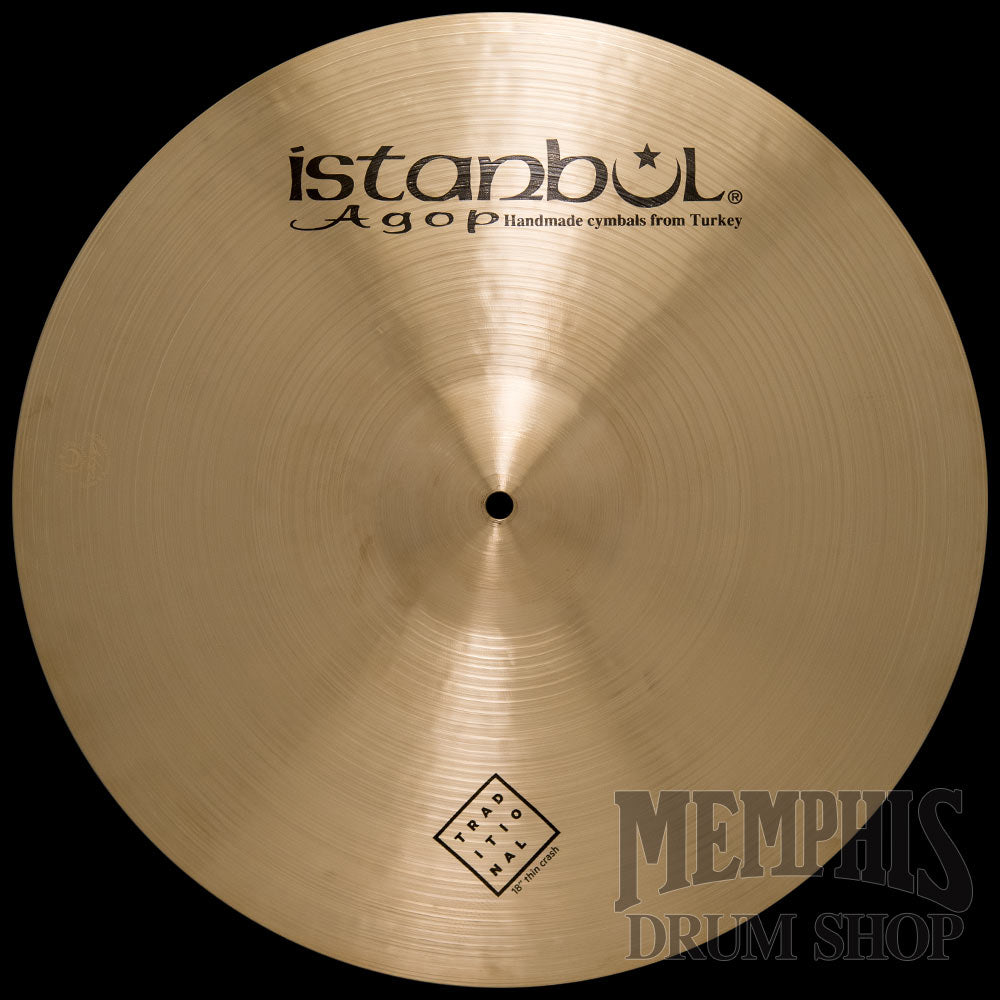 The 18" Istanbul Agop Traditional Thin Crash Cymbal (THC18) responds quickly, and has low and dark characteristics with a musical sound. Each Turkish cymbal is a work of art hand-crafted individually by the cymbalsmith. Variations in color, hammer marks, lathing, labels, etc., are all enhancements that add to the natural beauty, sound, and unique quality of these one-of-a-kind cymbals.
