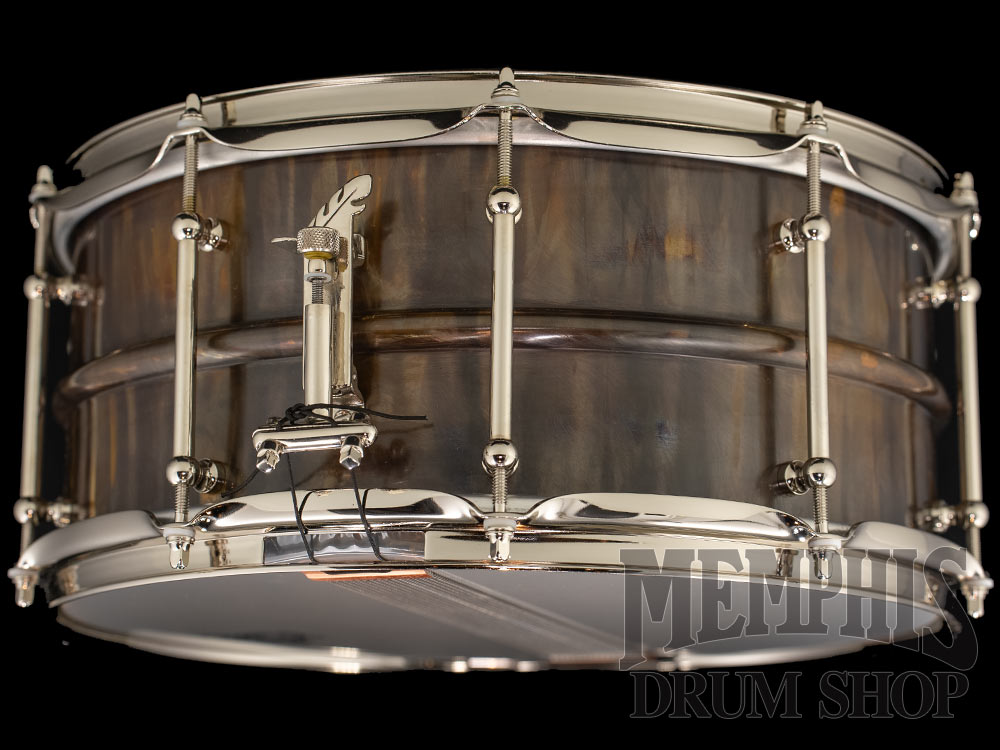 The TKO Bronze is explosive, sensitive, and full of color, both visually and sonically. The TKO Bronze model design and hardware consist of 2.5mm solid brass bright nickel-plated triple flanged hoops, 10 solid brass bright nickel-plated Corder tube lugs, bell-flanged bearing edges, vintage-inspired crimped snare beds, 16-strand PureSound snare wires, Remo Coated Ambassador batter drumhead with JNDC logo, Remo Hazy Ambassador snare side drumhead with JNDC logo, 24k gold-plated brass JNDC feather motif drum badge, and the bright nickel plated proprietary cast bronze JNDC “One Touch Classic” snare drum strainer (throw-off) system.