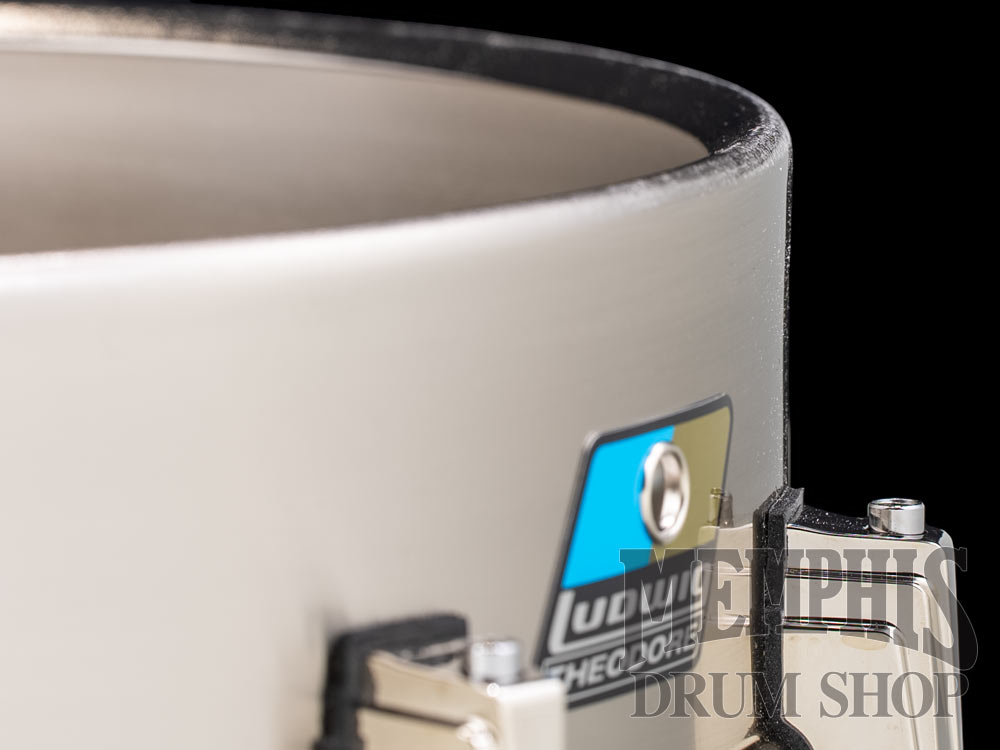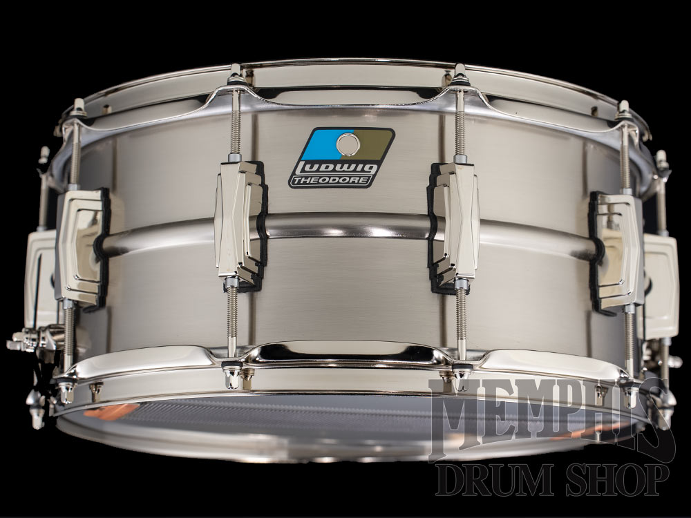 Introducing the Ludwig 14x6.5 Jon Theodore "The Revelation" Signature Snare Drum - A design from the minds of Jon Theodore and Ludwig. The Revelation is a striking blend of craftsmanship, style, and tone, built to honor one of the most dynamic drummers in modern music. Designed to embody Jon’s signature sound, this snare is a statement piece for players who demand both finesse and power. This 14x6.5 snare features a seamless, beaded 1mm brass shell finished in an exclusive antique nickel plating, delivering a warm yet articulate tone that excels in any playing environment. Paired with nickel-plated hardware, the drum boasts a cohesive and sophisticated aesthetic. A signature blue/olive badge reflects Ludwig’s storied legacy, while Jon’s personal touch comes through with his signature adorning each drum. This limited-edition snare is a collector’s masterpiece and a reliable workhorse for the stage and studio. Additional features include Custom Jon Theodore batter side bearing edge, flanged 45-degree snare side bearing edge,10 Imperial Lugs, 2.3mm triple-flanged hoops, P88 throw-off, P35 butt plate, PureSound Super 30-strand snare wires, Remo Controlled Sound Coated Black Dot batter drumhead with Ludwig logo, and Remo Hazy Ambassador snare side drumhead with Ludwig logo. The Ludwig Jon Theodore Signature Snare Drum isn’t just an instrument—it’s an extension of creative expression, precision, and timeless design. The Revelation is now available at the world’s finest drum shops, so get yours now and bring supreme power and legendary Ludwig tone to your drum set.