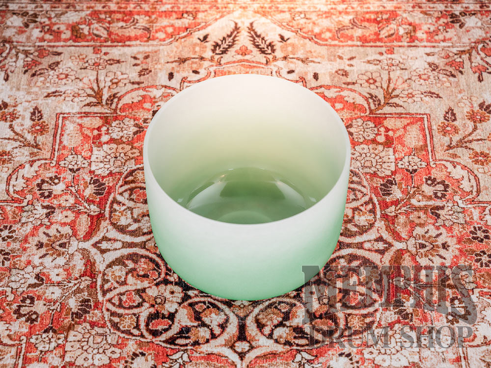 The Meinl Crystal Singing Bowl Color-frosted, Note F, Heart Chakra (CSBC11F) has a diameter of 11" / 28 cm and vibrates in note F4. The corresponding heart chakra promotes confidence, optimism, warmth, cheerfulness, compassion, and helpfulness.