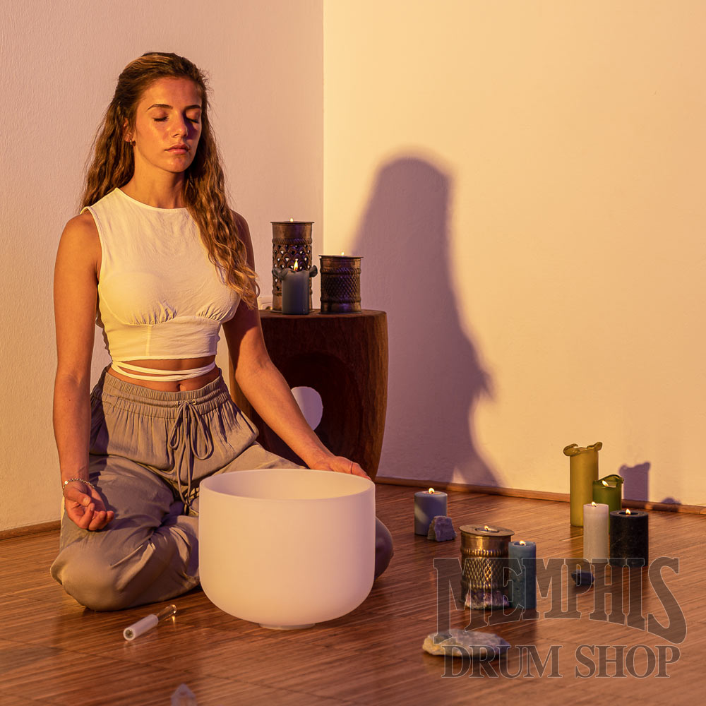 Meinl Sonic Energy Crystal Singing Bowl 12" Heart Chakra F (CSB12F). The white-frosted Meinl Sonic Energy Crystal Singing Bowls made of high-purity quartz create a very pleasant aura with their sound and design. Their long-lasting, spherical tone spreads when the singing bowl is gently tapped or rubbed so that the energy can be felt in the entire surrounding. All Crystal Singing Bowls are delivered with a silicone ring to avoid possible impact and to ensure the best resonance. This bowl has a size of 12" and vibrates in note F with 432 Hz. The corresponding heart chakra promotes confidence, optimism, warmth, cheerfulness, compassion and helpfulness.