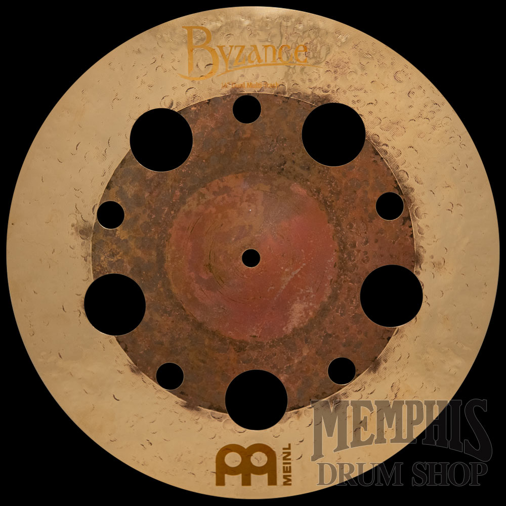 The 14" Meinl Dual Multi-Trash Crash Cymbal has a stunning contrast of extra dry and brilliant finishes with a unique combination of hammering and lathing. This is a very versatile cymbal that can be used in many different ways around your drum or percussion setup due to the added holes. Works as a trash crash or splash alone, and can be easily stacked with another cymbal. Due to the 14” size, it can also function as a replacement for one of your hihat cymbals, or be stacked together with your existing pair for a trashy effect.