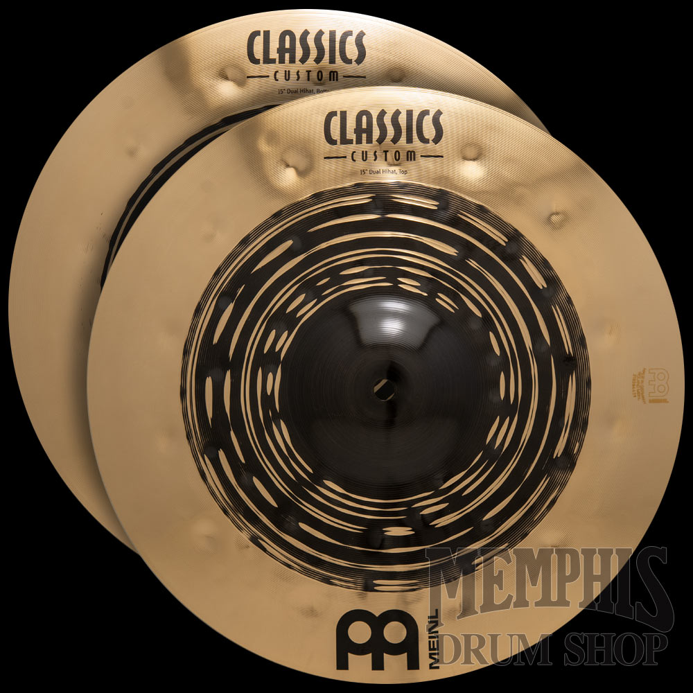 The Meinl Classics Custom 15" Dual Hi-Hats combine the balanced nature of B12 bronze alloy with our step-lathe formation process and deep over hammering to deliver a dark and crisp sound enveloped by a warm fundamental character. With the fully lathed and buffed edges along with a dark center, these hihats have a dark attack when played closed and a shimmering, sizzling undertow when played open. Plus, the medium thin top cymbal and medium bottom cymbal weights produce a solid foot chick. The warmth and complexity allow these hihats to sit lower in the mix when needed, and they can jump to life when the energy lifts.