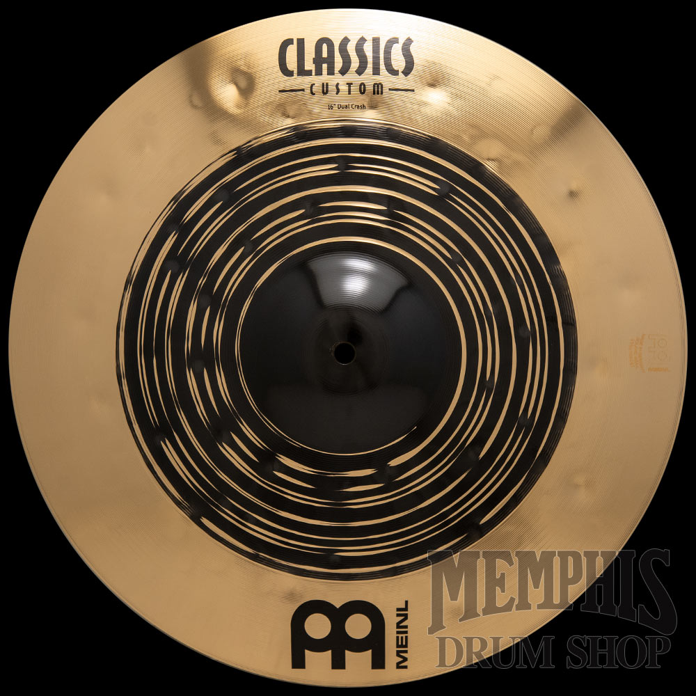 The Meinl Classics Custom 16" Dual Crash Cymbal combines the balanced nature of B12 bronze alloy with our step-lathe formation process and deep over hammering to deliver a dark and punchy sound enveloped by a warm fundamental character. With the fully lathed and buffed edges along with a dark center, this crash has a quick and explosive attack with a dose of bright shimmer followed by a dark, short sustain. The warmth and complexity from the B12 bronze and visually striking surface treatment give this crash a smooth feel and the ability to sit anywhere in a mix.