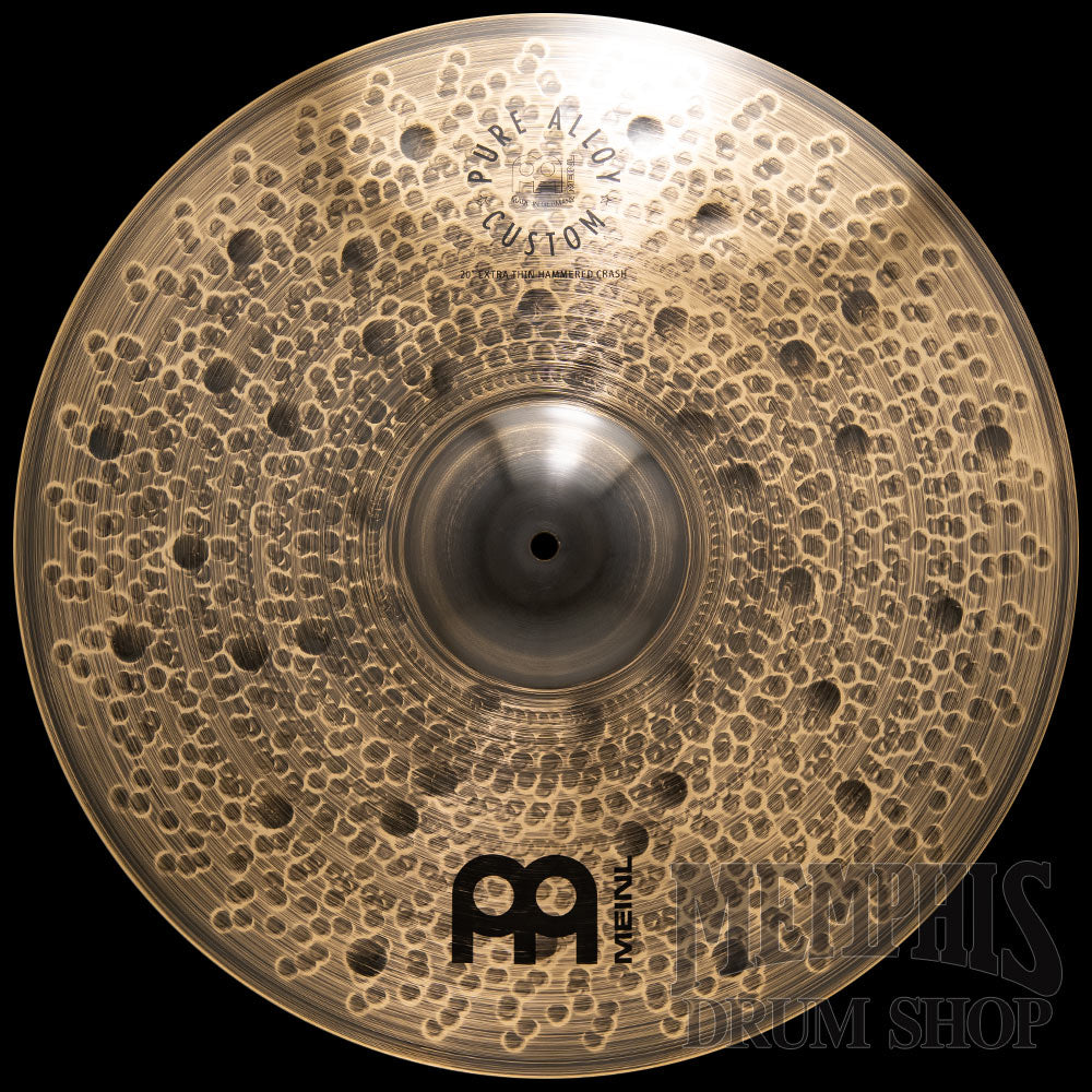 The Meinl 20" Pure Alloy Custom Extra Thin Hammered Crash Cymbal (PAC20ETHC) features a custom smoked-bronze top and brilliant bottom plus a thin weight and extra-large hammering across the bow. Producing a velvety crash under the stick due to the thinner weight, this cymbal speaks easily from whisper to roar. The additional hammering works in dark tonality and warmth.