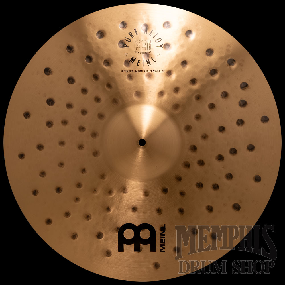 The 20" Meinl Pure Alloy Extra Hammered Crash Ride (PA20EHCR) is a cymbal you can be confident in, and when taken on a gig, it will function however you need. As a crash, it opens easily with a warm voice and medium sustain allowing it to be used in any musical application. As a ride, it features great separation between the stick definition on top and the warm wash underneath, and the bell is clear and pronounced providing plenty of cut when needed. This is a cymbal that any working drummer would benefit from having in their cymbal bag.