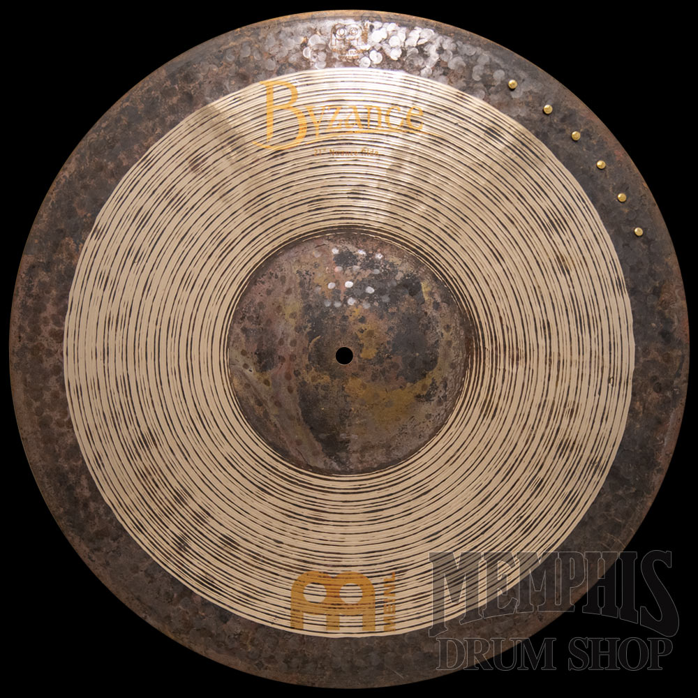 The 21" Meinl Byzance Jazz Ralph Peterson Signature Nuance Ride Cymbal w/ Rivets features a hand hammered and lathed surface with a warm sound. Every Byzance model is hand hammered into shape by cymbal artisans in Turkey, giving each cymbal its own unique and colorful voice. The overall presence that this cymbal delivers is dark, buttery warmth that flows around crisp definition. The award winning Byzance Jazz cymbals have a traditional finish and contain outstanding sound qualities. They were developed for the natural vintage sound, requisite of traditional jazz and bebop. This Ride stems from the design characteristics of the MEINL jazz line but with a steeper profile and different lathing process to deliver unmatched stick definition and control with a beautiful blend of warm, slightly dry wash underneath. Whether playing a fast swing or a slow ballad with full stick strokes or taps, the definition and wash of this cymbal will follow and respond immediately to your level of intensity. MEINL Tradition Rides also have a very musical crash that blends well with the stick definition of the cymbal.