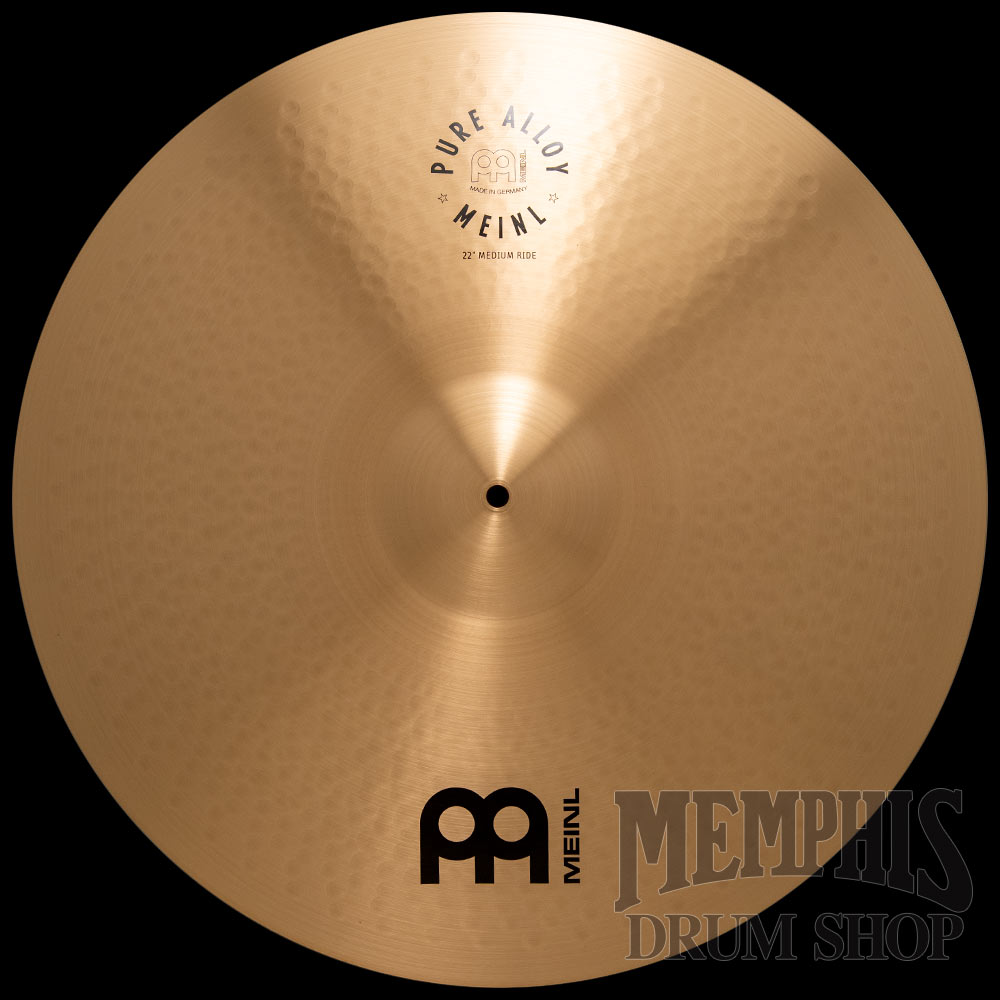 The 22" Meinl Pure Alloy Traditional Medium Ride Cymbal pushes your sound with an upfront mix cushioned by fundamental lows along with an effortless bell. Traditional finish with a fully lathed surface. Shimmering stick response with plenty of stick definition. Clean cut "ping" with a medium sustain marked by plenty of mid range tones. Effortless, clean cut sounds. This is Meinl Pure Alloy. A timeless voice formed with fully lathed surfaces allows them to be expressive in virtually any style. Their refined nature has two sides: polished definition met by a velvety wash that encompasses a full tonal spectrum with plenty of mids. Shimmering, smooth sounds bounce right along with your stick to create a reactive touch that extends through all dynamic levels. These cymbals cut with agility. Blanketing their superb stick definition is a medium to long sustain that plays out with just the right amount of strength and temperate undertone.