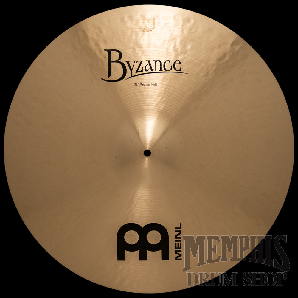 The 23" Meinl Byzance Traditional Medium Ride Cymbal has a balanced, controllable stick response with a defined ping and a blend of bright overtones. Warm basic sound with medium sustain and bell.