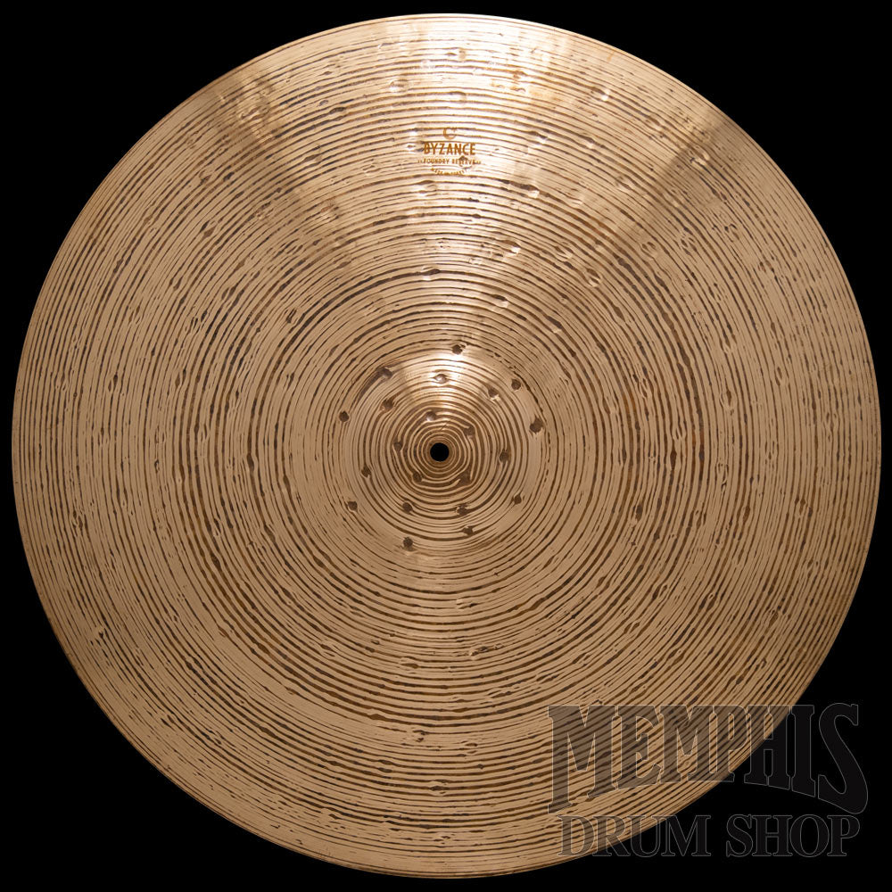 The 24" Meinl Byzance Foundry Reserve Light Ride Cymbal showcases the stunning, sonically rich works of art that Meinl's cymbalsmiths create with layers of tonality and nuance; however, that is only half of the beauty, as they are visually striking from the one-of-a-kind hand-hammered marks. The extra hammering creates many deep craters across the surface. When this hammering is coupled with the fully lathed top and bottom, it produces a clear, dry stick-attack note over a lush bed of low undertones.