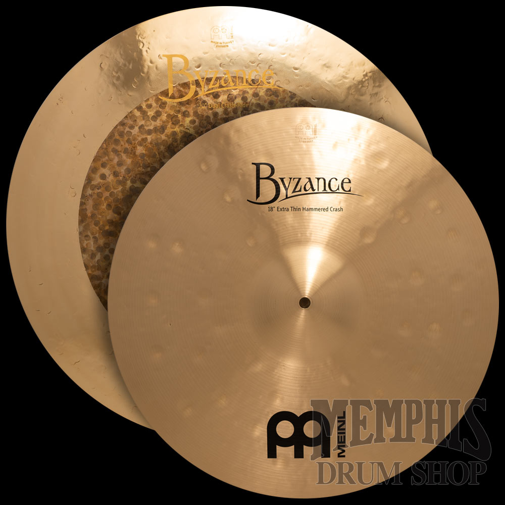 This crash pairing is loaded with texture from the different surfaces, thin weights, and extra hammering. 18" Extra Thin Hammered Crash: simply put, this cymbal will make you buzz when you hit it. Large, deep hammer blows with the light weight and thin profile give the crash trashy punch with that melt-in-your-stick feel. 20" Dual Crash-Ride: when riding, it gives you articulate definition that activates the whole cymbal while not washing out. When crashing, it develops into a dark, trashy crash with a response that swells. Crafted from 100% cast B20 bronze and hammered into shape in Turkey. Meinl Byzance cymbals are rooted in traditional cymbal crafting methods, yet their old-world background is dialed-in to 21st century needs.