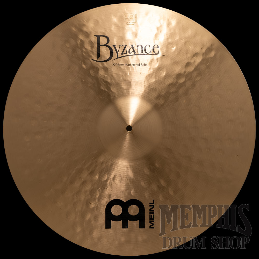 The 22" Meinl Byzance Traditional Extra Hammered Ride Cymbal (B22EHR) features hammered and lathed surfaces, warm sounds and selection of models may be very traditional, but these cymbals are the ultimate choice when it comes to versatility. Rides with a buttery-soft feel. Crashes that range from dark and shimmering with thin models, to powerful and focused with heavier ones. Traditional tone and sonic individuality come together in each of these cymbals.