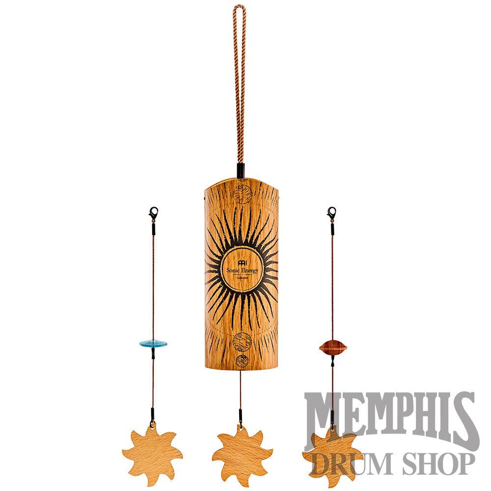 The Meinl Cosmic Bamboo Chime - Sol Day (CBCSOL): The Meinl Sonic Energy Cosmic Bamboo Chimes produce soft resonant tones that fill your space with serene sound. Use for meditation, sound baths, and yoga. Or create a relaxing space at home for reflection. Hold the cord and gently swing the chime to activate its sound. Inside is a pendulum and a group of metal tines tuned to specific pitches. Easily modify the tone by switching between the two pendulums: acrylic (hard) and wood (soft). Insert the clasp end of the pendulum through the bottom of the chimes. Attach the clasp to the hook on the wood crossbar. Pull the braided cord straight and pick it up to play the chimes. Available in four tunings matched to the time of day: Aurora (morning), Sol (day), Luna (evening), and Stella (night). Combine two or more to build contrast in mood. Each chime comes with two additional spare pendulums (acrylic, wood).