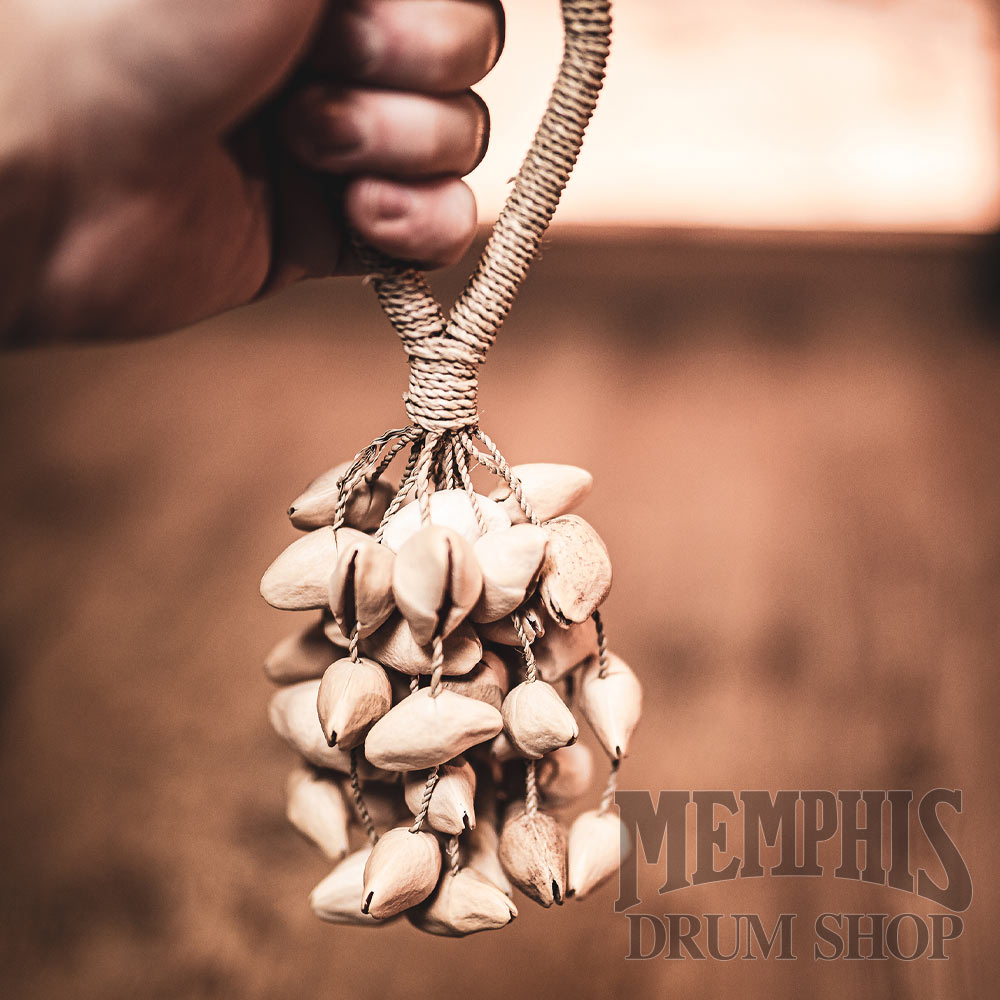 Meinl Kenari Shaker Small (SKRS) - Kenari seed nutshells, attached to a wrist strap, create a unique, versatile instrument. Due to its rather powerful and crisp sound, the Meinl Sonic Energy Kenari Shaker is also perfect for louder acoustic sessions, where the shaker has to prevail.
