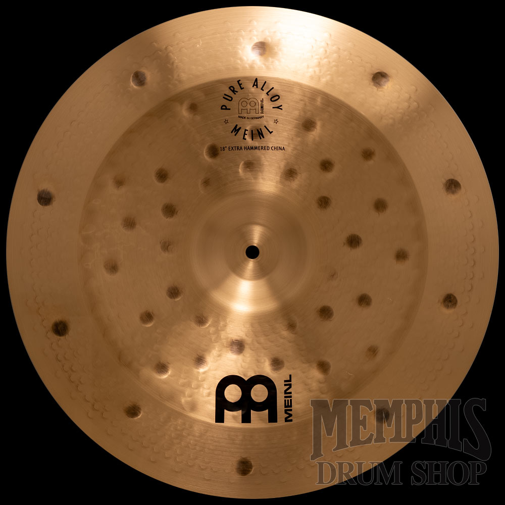 The 18" Meinl Pure Alloy Extra Hammered China Cymbal (PA18EHCH) features extra-deep hammering that allows it to accent with punchy and warm tone. The clean attack is followed by a complex, fast decay. A bold and trashy china cymbal. Made in Germany from Pure Alloy bronze with high-tech computerized hammering for consistent tone