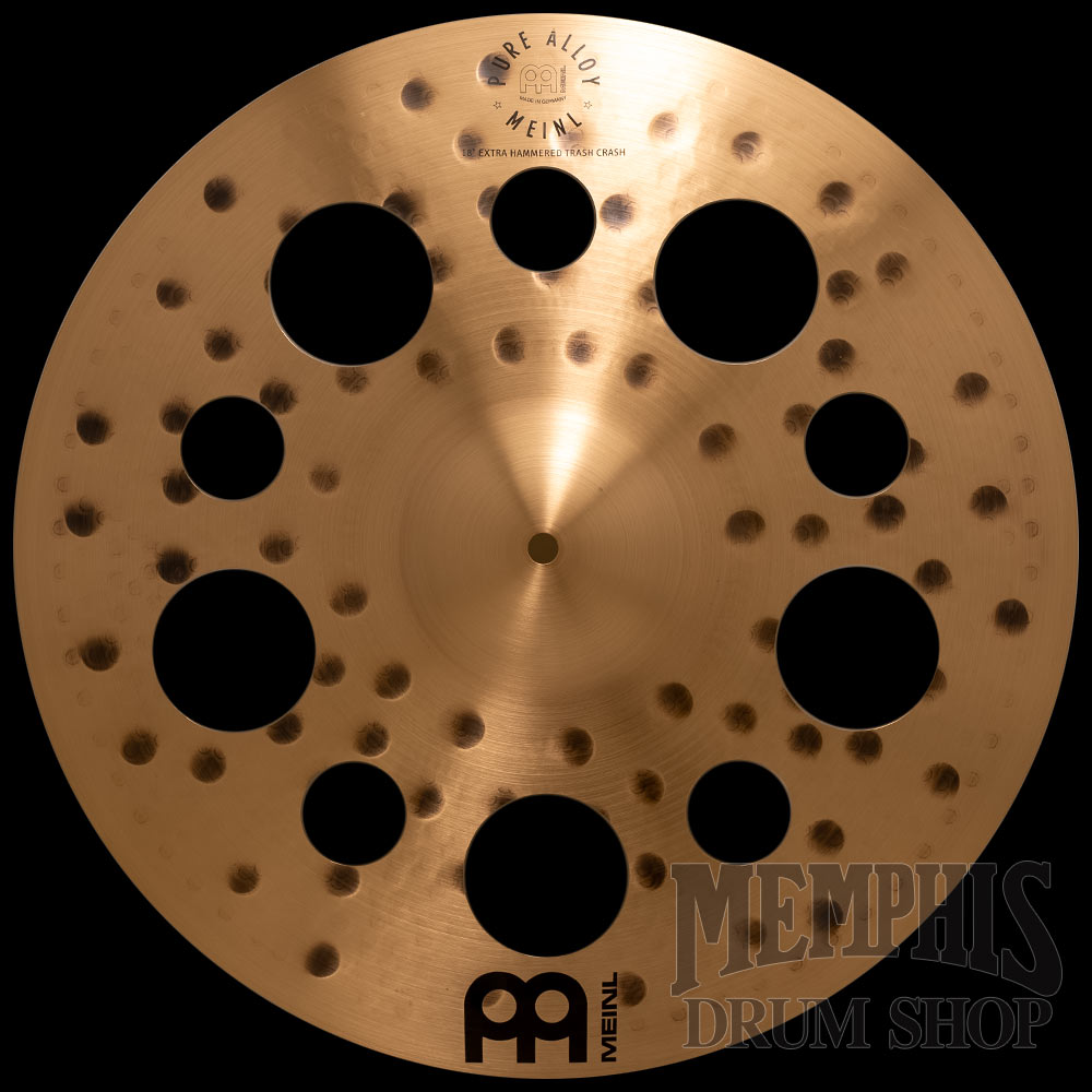The Meinl 18" Pure Alloy Extra Hammered Trash Crash Cymbal (PA18EHTRC) features extra-deep hammering that allows it to accent with punchy and warm tone. The clean attack is followed by a complex, fast decay. Hole cut-outs boost trashiness and dry the sound. Made in Germany from Pure Alloy bronze with high-tech computerized hammering for consistent tone.