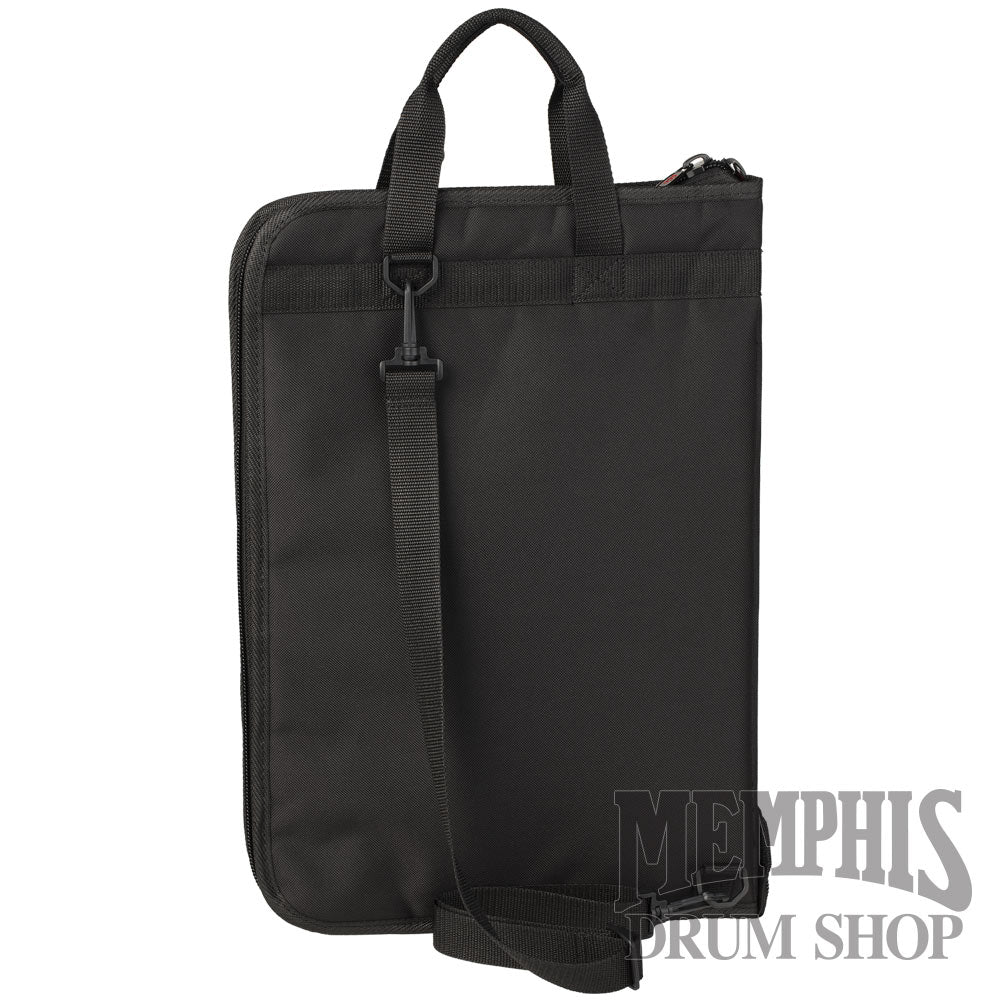 The Meinl Stick Sling Bag MSSB is a wider version of our best-selling Professional Stick Bag. Inside are eleven pockets of varying size for any kind of stick, mallet, rod, brush or accessory. Perfect for drum set players who thrive on organization, marching drummers storing extra-large sticks, or percussionists who carry a plethora of mallets. An oversized exterior pouch is big enough to fit bulkier items like books, sheet music, practice pads, metronomes and other accessories. Carry the loaded bag with its sturdy, reinforced handles or use the adjustable body strap to sling the bag across your body and keep your hands free. Utilize the attached heavy-duty clips to suspend the open bag from your floor tom or any other percussion instrument, and keep your tools conveniently within reach.