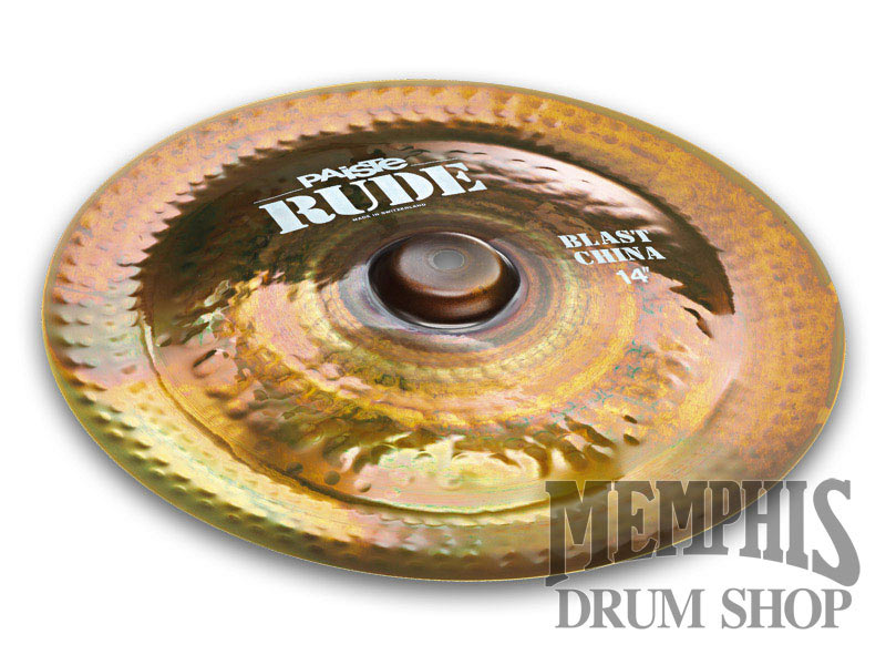 The 14" Paiste Rude Blast China Cymbal is bright, metallic, rough, lively, and raw. Wide range, fairly clean mix. Very responsive. Explosive, dirty crash sound. Agile China for strong, exotic accents.