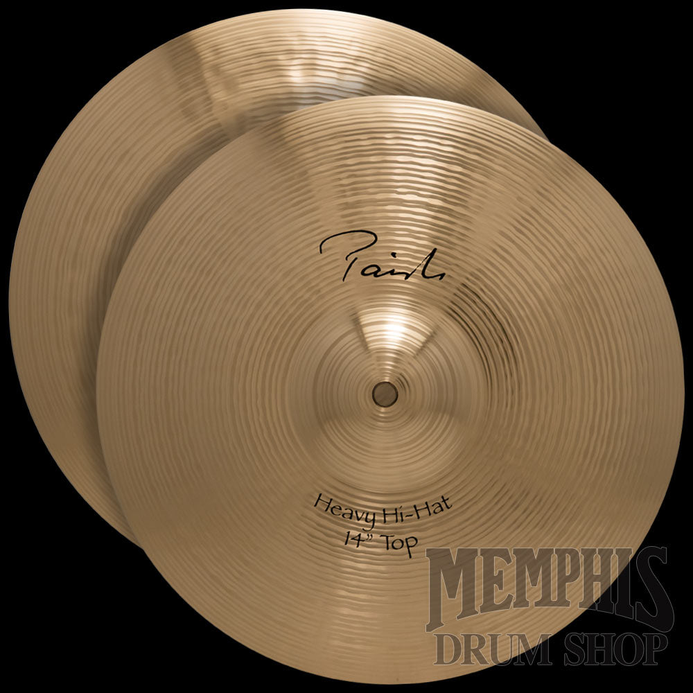 The 14" Paiste Signature Heavy Hi Hat Cymbals are very bright, full, and brilliant. Full frequency range, balanced, clean mix. Responsive feel. Bright, full open sound. Fat, cutting chick sound. Good for heavier playing.