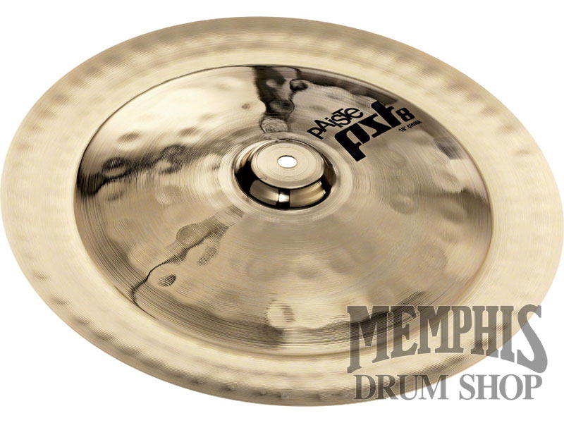 The 16" Paiste PST 8 Reflector China Cymbal is medium bright, full, and slightly raw. Medium range, complex mix. Fast attack, shattering, trashy decay. A lively, energetic china, useful in many musical applications.