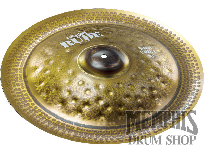 The 16" Paiste Rude Wild China Cymbal Bright, metallic, aggressively roaring, very strong, raw. Wide range, fairly clean mix. Heavy with a comfortable feel. Aggressive, shattering attack with a roaring crash. Modern China sound with a grungy touch. Well suited for loud and very loud musical applications.