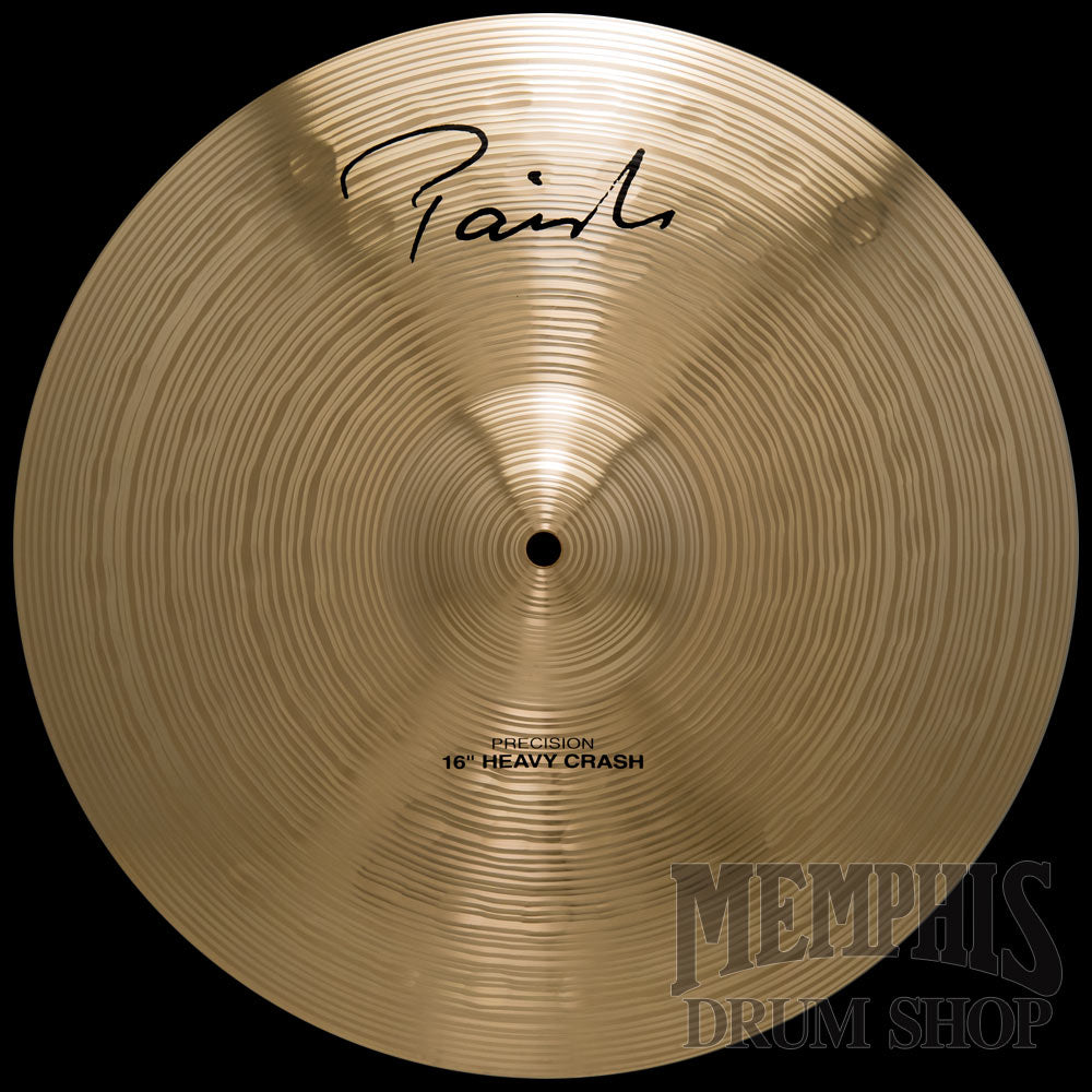 The 16" Paiste Signature Precision Heavy Crash Cymbal is very bright, warm, strong, and brilliant. Wide range, clean mix. Slightly heavy, responsive feel. Meaty, powerful crash for clear, cutting, precise accents in Rock, Hard Rock and Heavy Metal.