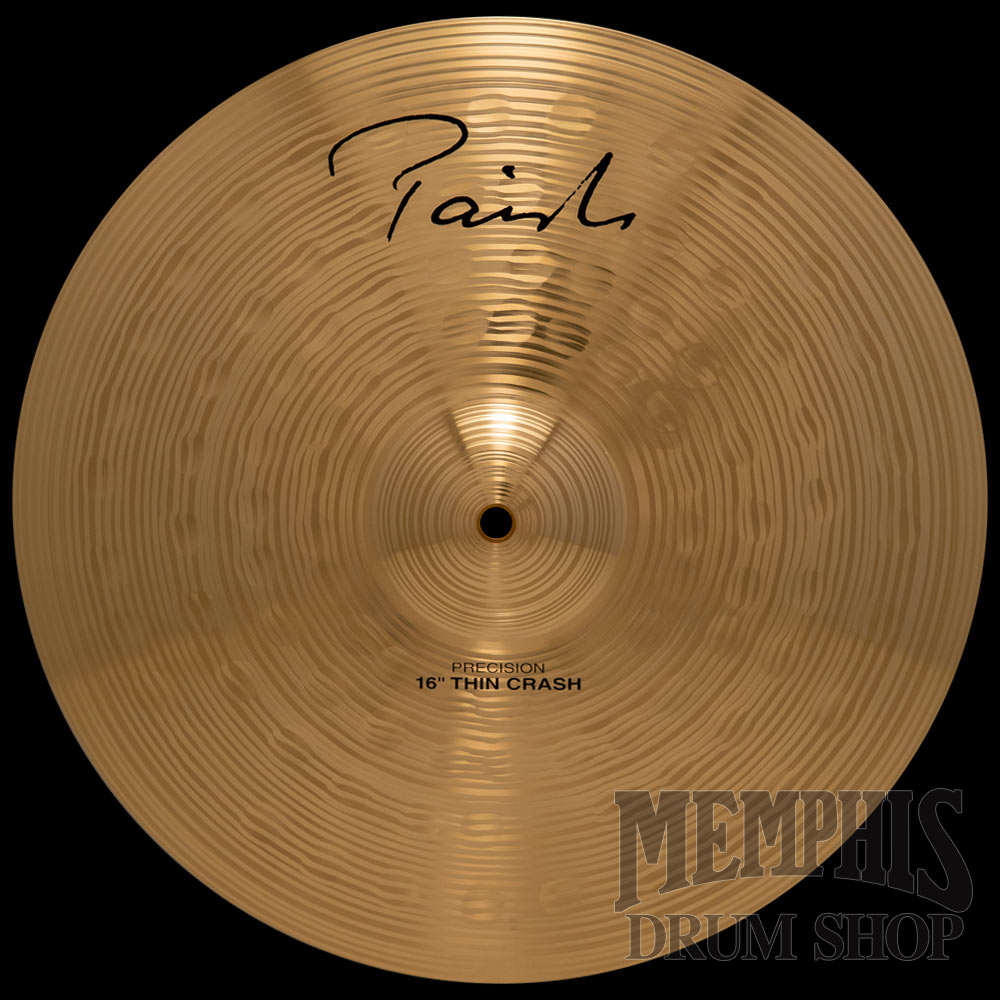 The 16" Paiste Signature Precision Thin Crash Cymbal is warm, full, and brilliant. Wide range, clean mix. Responsive and soft feel. Clear, yet very warm sounding crash sound for medium loud musical situations.