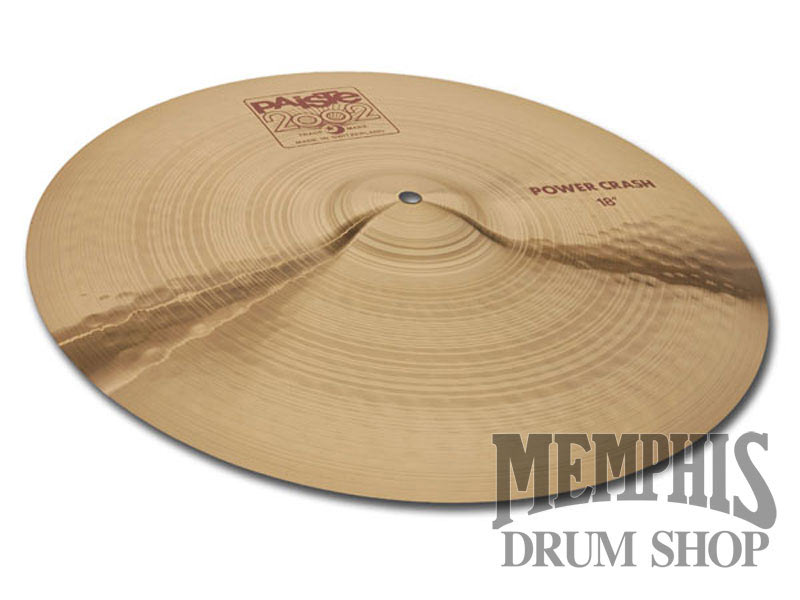 The 17" Paiste 2002 Power Crash Cymbal is aggressive, shattering, and powerful. Fairly narrow range, dense, tight mix. Heavy feel, powerful attack, with brilliant, silvery highs and midrange heavy body. Strong, extremely cutting crash for heavy playing.