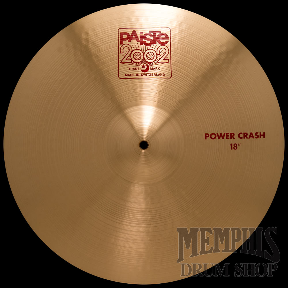 The 18" Paiste 2002 Power Crash Cymbal is aggressive, shattering, and powerful. Fairly narrow range, dense, tight mix. Heavy feel, powerful attack, with brilliant, silvery highs and midrange heavy body. Strong, extremely cutting crash for heavy playing.