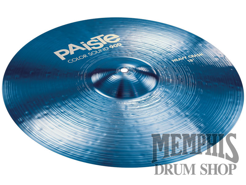 The 18" Paiste Color Sound 900 Blue Heavy Crash Cymbal is crafted from 2002 Bronze, with its legendary warmth, brilliance and strength. In sophisticated hybrid manufacturing the cymbals are refined by Swiss craftsmanship with hand hammering and lathing. A special finish slightly darkens the cymbals and amplifies the lathing grooves and hammer marks for a spectacular appearance that fuses roughness and elegance. Innovative design provides 900 Series cymbals with greater flexibility, resulting in a giving feel and outstanding playability. The overall sound is warm and full with subdued, discreet brightness. Heavier and larger models add abundant brilliance, cut and projection. The Paiste 900 Series sets the new standard for advanced sound at a reasonable investment.