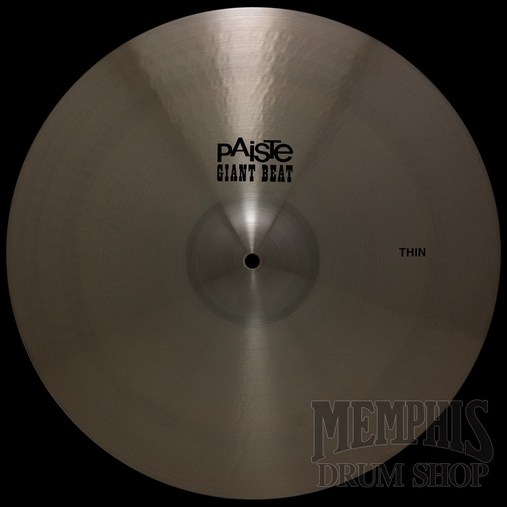 The 18" Paiste Giant Beat Thin Multifunctional Cymbal (1011218) is fairly dark, warm, and breathy. Medium wide range, slightly complex mix. Soft feel; very responsive. A dynamic, full and velvety crash cymbal for a wide range of musical styles. Also well-suited for mallet applications.