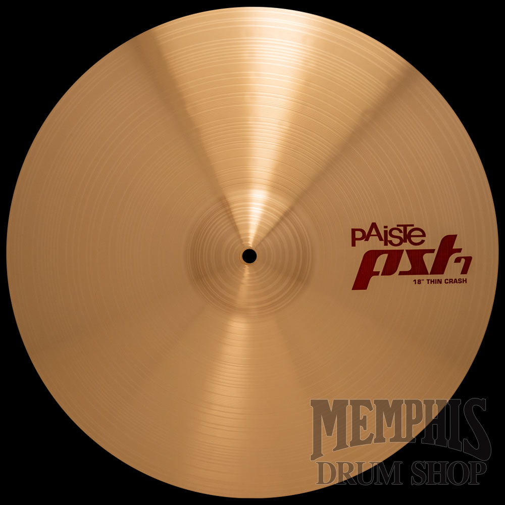 The 18" Paiste PST 7 Thin Crash Cymbal is warm, and airy with a pinch of a brilliant sizzle. Fairly wide range, clean mix. Soft, responsive feel. A light crash for unintrusive accents in low to moderate music styles.