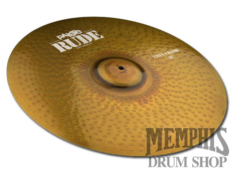 The 18" Paiste Rude Thin Crash Cymbal is full, dark, and energetic with a brilliant broad sparkle underneath the overall cutting character. Very flexible with a wide range and a fairly complex mix. Responsive, explosive, shattering attack. Breathy layers of sound with that distinctive RUDE attitude.