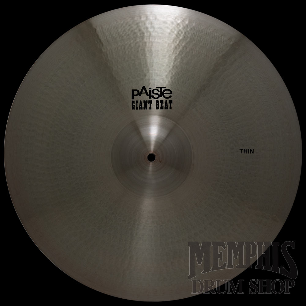 The 20" Paiste Giant Beat Thin Multifunctional Cymbal (1011220) is fairly dark, warm, and breathy. Medium wide range, slightly complex mix. Soft feel; very responsive. A dynamic, full and velvety crash cymbal for a wide range of musical styles. Also well-suited for mallet applications.