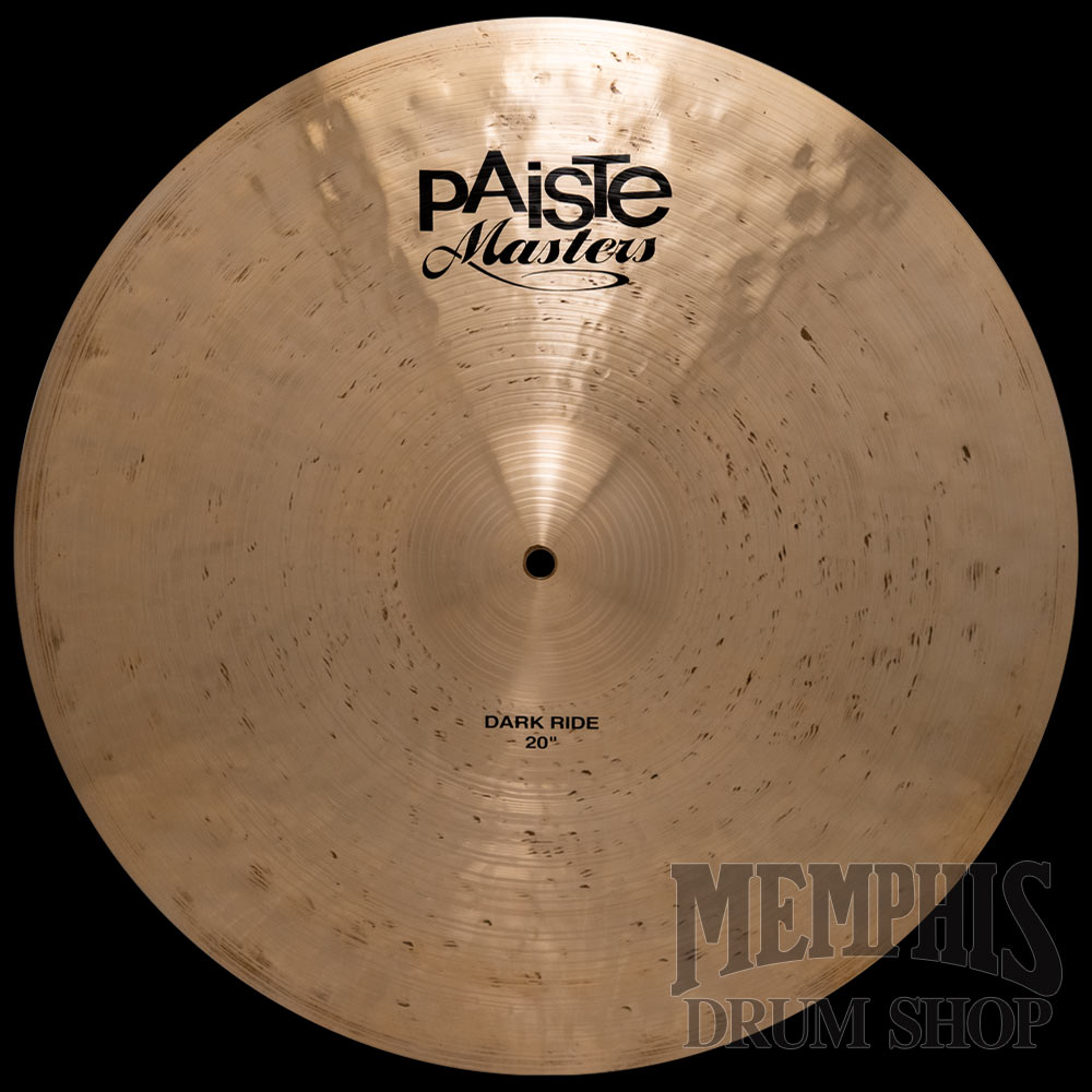 The 20" Paiste Masters Dark Ride Cymbal is dark, warm, smoky, and breathy. Fairly wide range, complex mix. Soft feel with a quick response. Very well crashable. Controllable, peppery stick sound over a dark layered oriental, smoky wash. A ride cymbal that can easily be used in a small jazz club setting and flourish in other styles such as blues or country music.