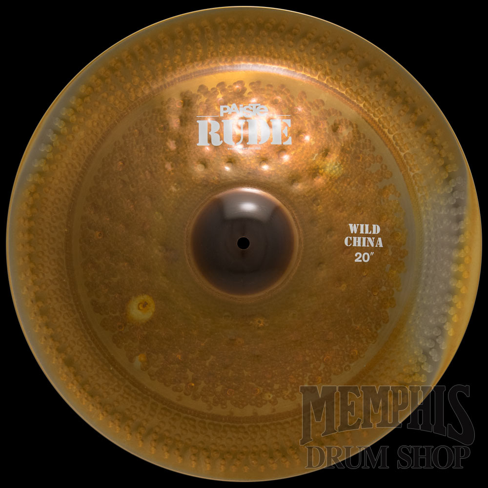 The 20" Paiste Rude Wild China Cymbal Bright, metallic, aggressively roaring, very strong, raw. Wide range, fairly clean mix. Heavy with a comfortable feel. Aggressive, shattering attack with a roaring crash. Modern China sound with a grungy touch. Well suited for loud and very loud musical applications.