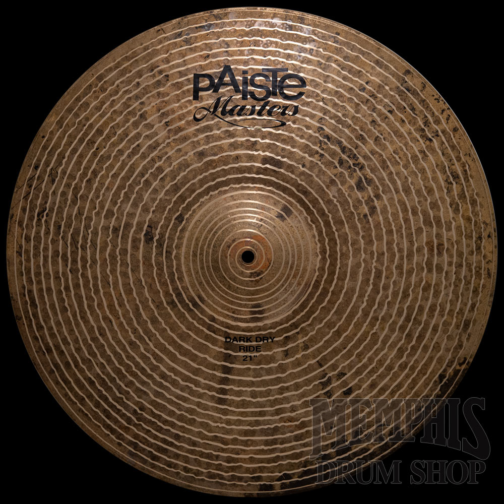 The 21" Paiste Masters Dark Dry Ride Cymbal is dry, rich, silky, and strong. Medium range, fairly complex mix. Very controllable and fairly dry feel. Silvery ping over rather short sustained and dusty wash. Ideally suited for articulated and precise playing in most musical styles such as R&B, Funk, Pop and Country.